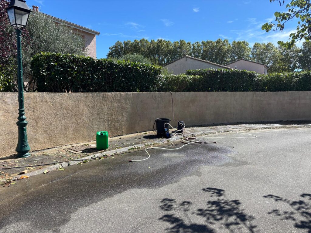 Pour une protection renforcée, nous appliquons un traitement hydrofuge incolore ou coloré sur vos façades et toitures. Ce produit imperméabilise les surfaces sans les étouffer, laissant le matériau respirer tout en repoussant l’eau. C’est une solution efficace pour éviter les infiltrations et prolonger la vie de vos murs et toitures.